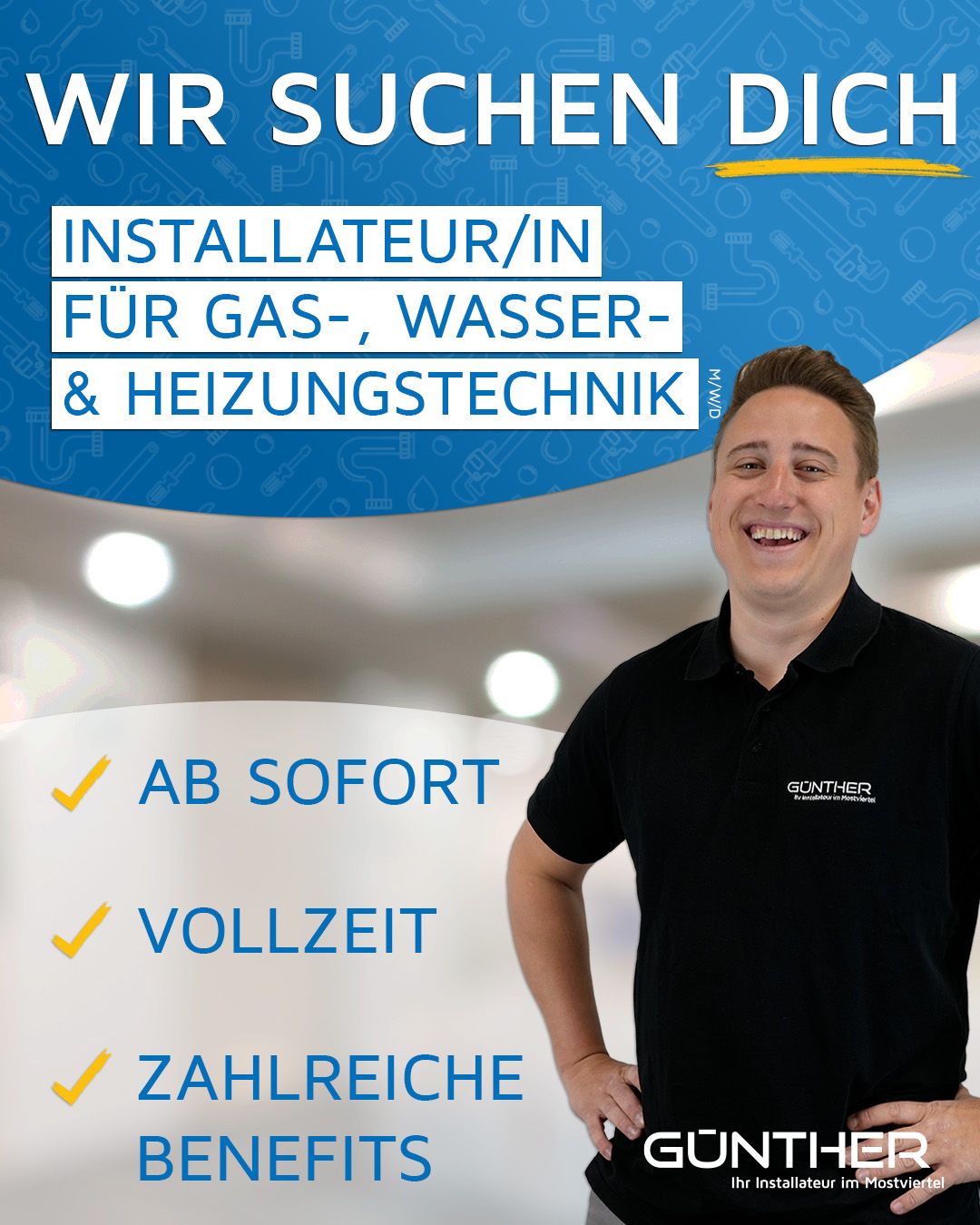 Bei Günther bist du nicht nur Installateur/in – du bist Teil von etwas Echtem. Ein Team mit Herz, ein Job mit Sinn und Projekte, auf die du stolz sein kannst.